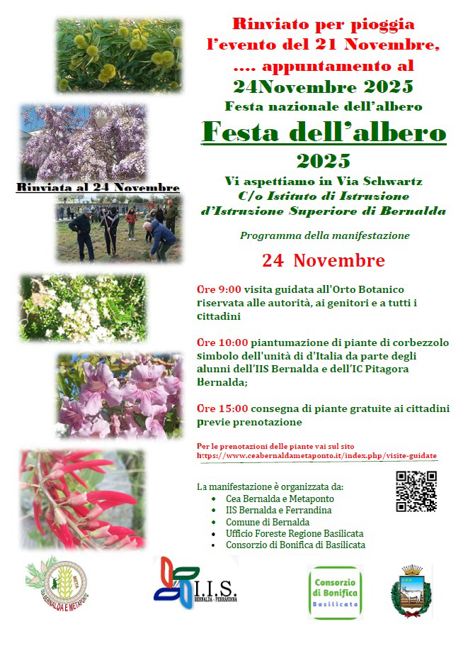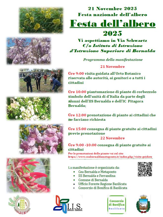 Il nostro Orto Botanico chiamato “il giardino dei profeti” è all’interno dell’IIS Bernalda in Via Schwartz,20 Bernalda . In esso sono presenti 1600 piante di 150 specie diverse. L'Orto Botanico è dotato di una ricca collezione di piante autoctone ed esotiche ,provenienti da ogni parte del pianeta. Un progetto poliennale che ha visto coinvolti istiruzioni, alunni e volontari.