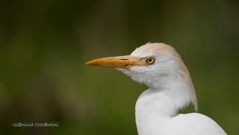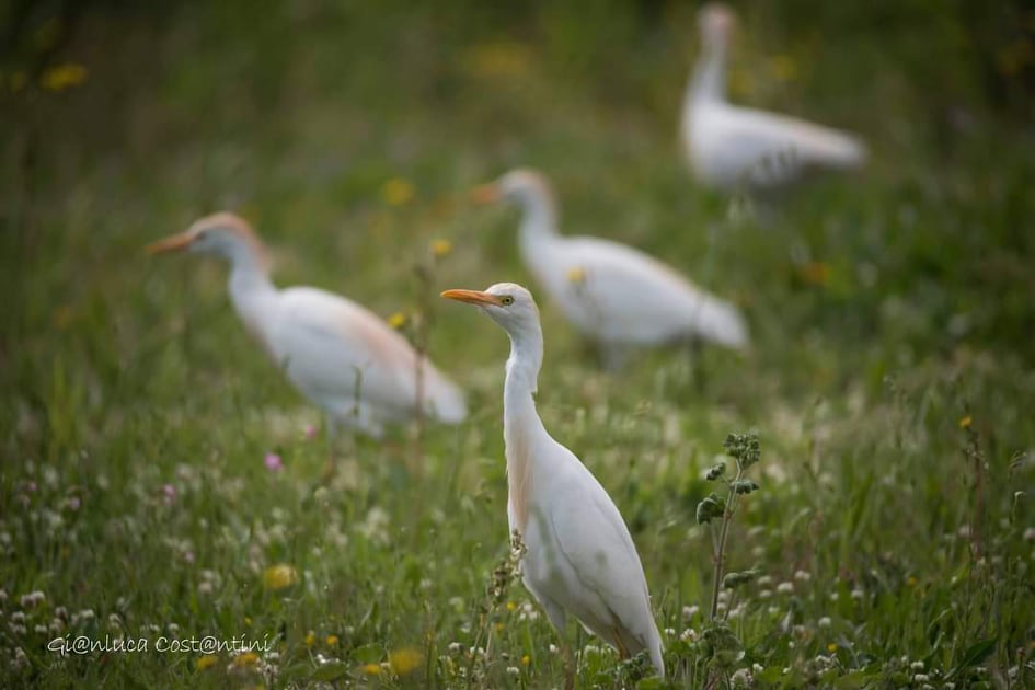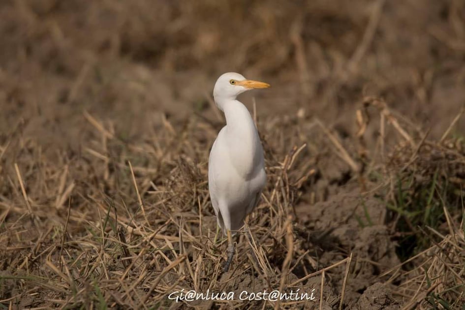 L’Airone guardabuoi (Bubulcus ibis) è un ardeide di medie dimensioni, piuttosto tozzo, se paragonato alla Garzetta. Ha il becco massiccio di colore giallo-arancio e il piumaggio bianco, che nella stagione riproduttiva acquisisce sfumature fulve su capo, petto e dorso. La sua dieta comprende insetti, piccoli roditori e anfibi, procurati affiancando le mandrie al pascolo – che con i loro passi spaventano la microfauna facendola saltare fuori dal terreno – oppure pedinando gli aratri. Nidifica in garzaie con altri ardeidi ed è un uccello spiccatamente gregario. Si tratta, inoltre, di un uccello estremamente adattabile che – a differenza di altri aironi – non necessita di vaste aree umide.