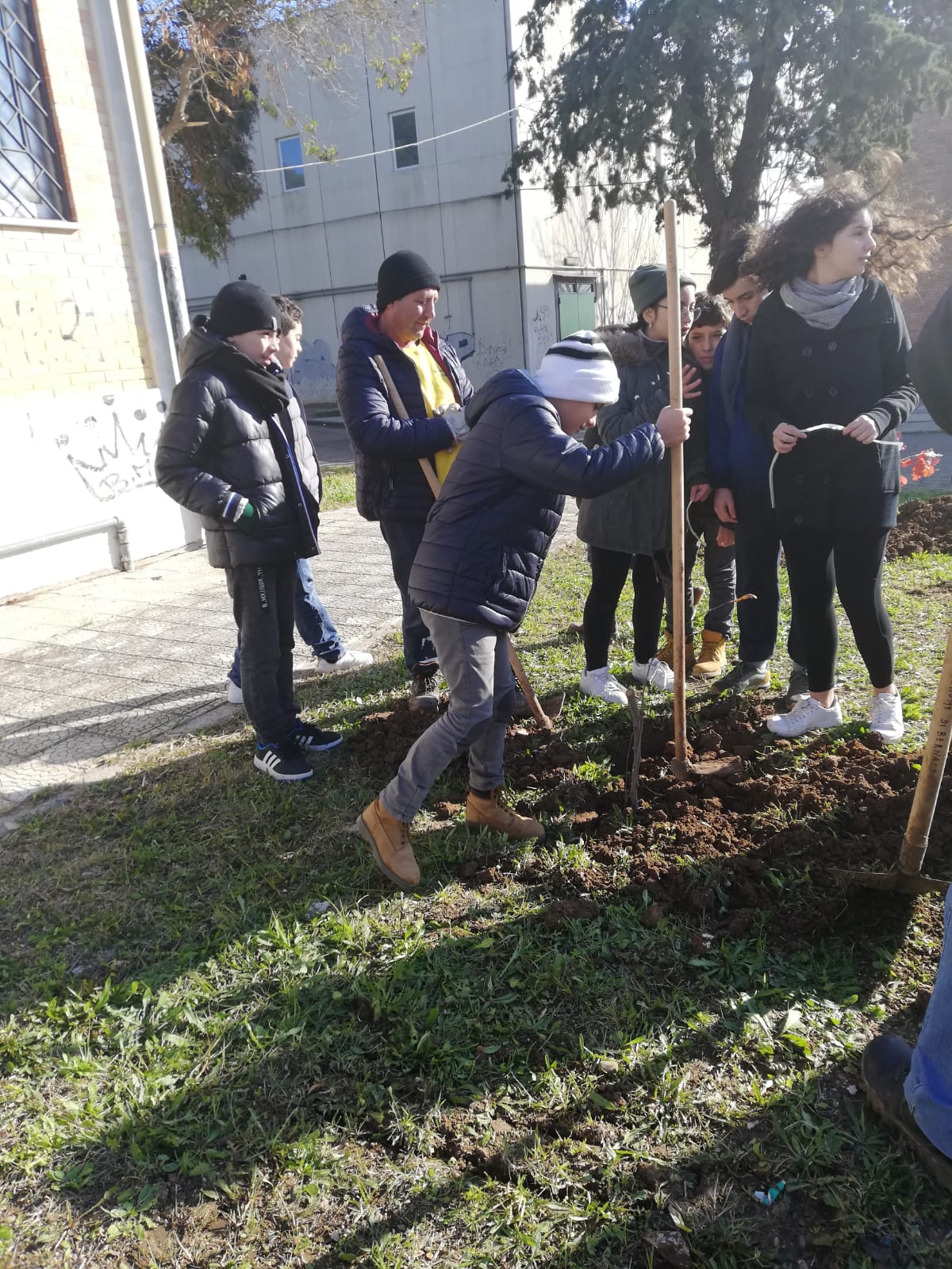 Ore 8,30 Inizio piantumazione di alberi presso la scuola dell'Infanzia e la Scuola Media di Via Anacreonte.