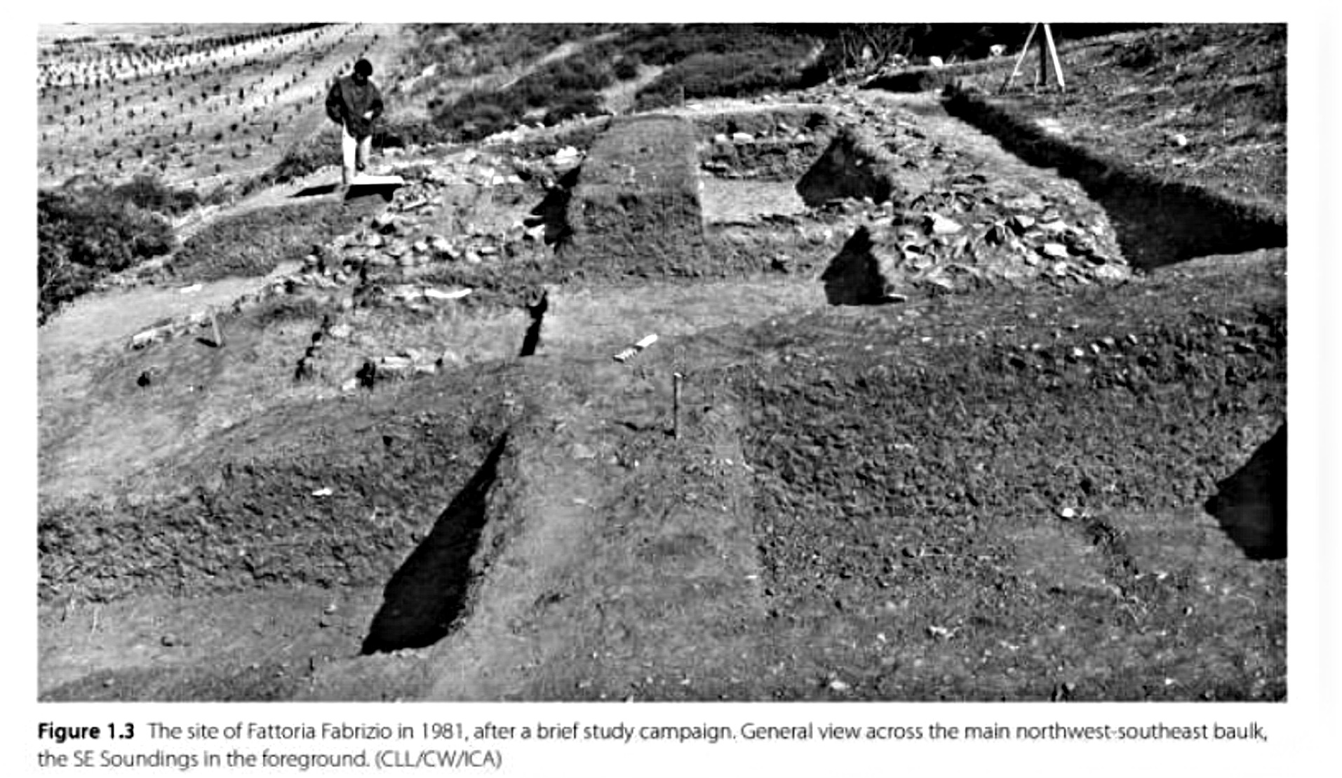 Della Fattoria sul pendio, mascherata da una fitta vegetazione di lentisco , è ancora evidente la pianta (vedi foto sotto) perfettamente conservata. Poco distante, sul fondovalle ancora sgorga tantissima acqua dalla sorgente di Ponte Fabrizio, pozzo utilizzato dalle tante fattorie presenti in zona.