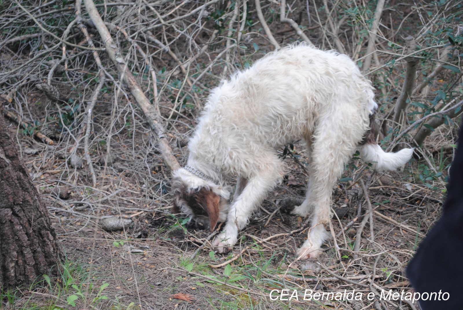 In questi giorni nella nostre pinete è in atto una vera e propria aggressione a colpi di zappette, tartufari e…polpette avvelenate (non è una metafora) per cani cercatori di tartufi. Procediamo con ordine e parliamo brevemente del tartufo di Metaponto.Nella nostra riserva è presente in grande quantità in tartufo meno pregiato (si fa per dire), il Tuber Borchii Vittadini noto come; "Bianchetto” o “Marzuolo" ha forma globosa piuttosto regolare, la zona esterna (peridio) è liscia e di colore biancastro negli esemplari giovani, bruno con maculature rugginose a maturazione. La parte interna (gleba) è dapprima biancastra, successivamente fulva e poi bruno violacea, ha vene bianche che tendono a imbrunire leggermente. Matura da gennaio ad aprile, emana un odore intenso, agliaceo. Nei rimboschimenti di conifere viene frequentemente confuso con altri tartufi con peridio biancastro e liscio quali T. maculatum e T. oligospermum. Il clima non ne condiziona, in genere, la maturazione dei carpofori, che avviene dall'autunno alla primavera, ma ilperiodo consentito va da gennaio ad aprile. Il suo prezzo di mercato, sul campo, si aggira sui 100-200 € per Kg. A sentire i racconti dei tartufai, di solito