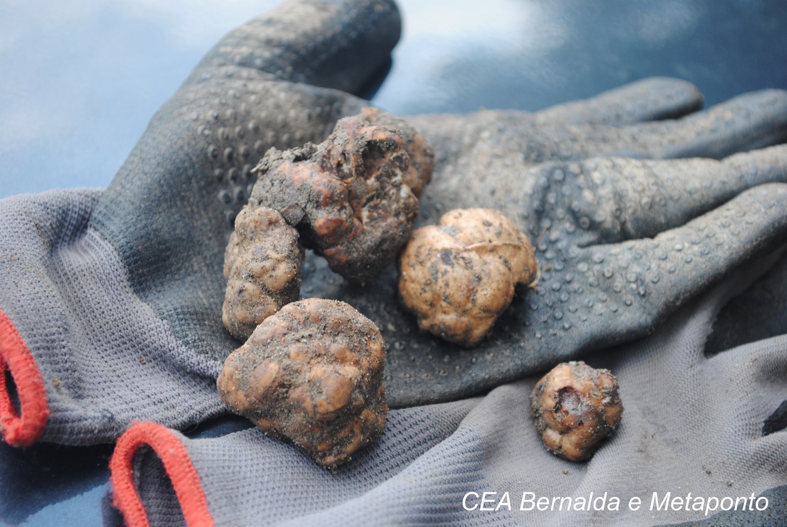 sempre sornioni e diffidenti verso l’intervistatore di turno, ”le pinete joniche, sono ricche di tartufi anche di buona qualità: dal bianchetto, al bianco d'Alba, allo Scorzone“. Dai racconti apprendiamo anche che il “nostro” tartufo viene venduto a grossisti pugliesi che lo rivendono a ristoratori per impreziosire i succulenti piatti nelle zone storiche del tartufo del centro nord. Si parla anche di quantità importanti. Le considerazione che un’altra prelibatezza del nostro territorio (tipo olio per capirci) faccia da attrattore per altre aree, viene ovviamente spontanea, ma ci fermiamo alla constatazione oggettiva, per il momento puntiamo il dito sul discorso ambientale. Nel tratto di pineta che va da Policoro a Pisticci, la lotta tra i tartufari è senza quartiere, i tartufaro parla di raccolta fuori dal periodo consentito, di un uso spropositato di cani, di zappette o addirittura piccoli mezzi meccanici che esplorano e devastano il sottobosco e addirittura uso di polpette e acque avvelenate per cani. Come associazione abbiamo taciuto su questo problema finora allo scopo di evitare l’effetto boomerang, ossia che un grido d’allarme si tramutasse in attrattore verso cercatori senza scrupoli, ma credo sia giunto il momento di denunciare il problema.